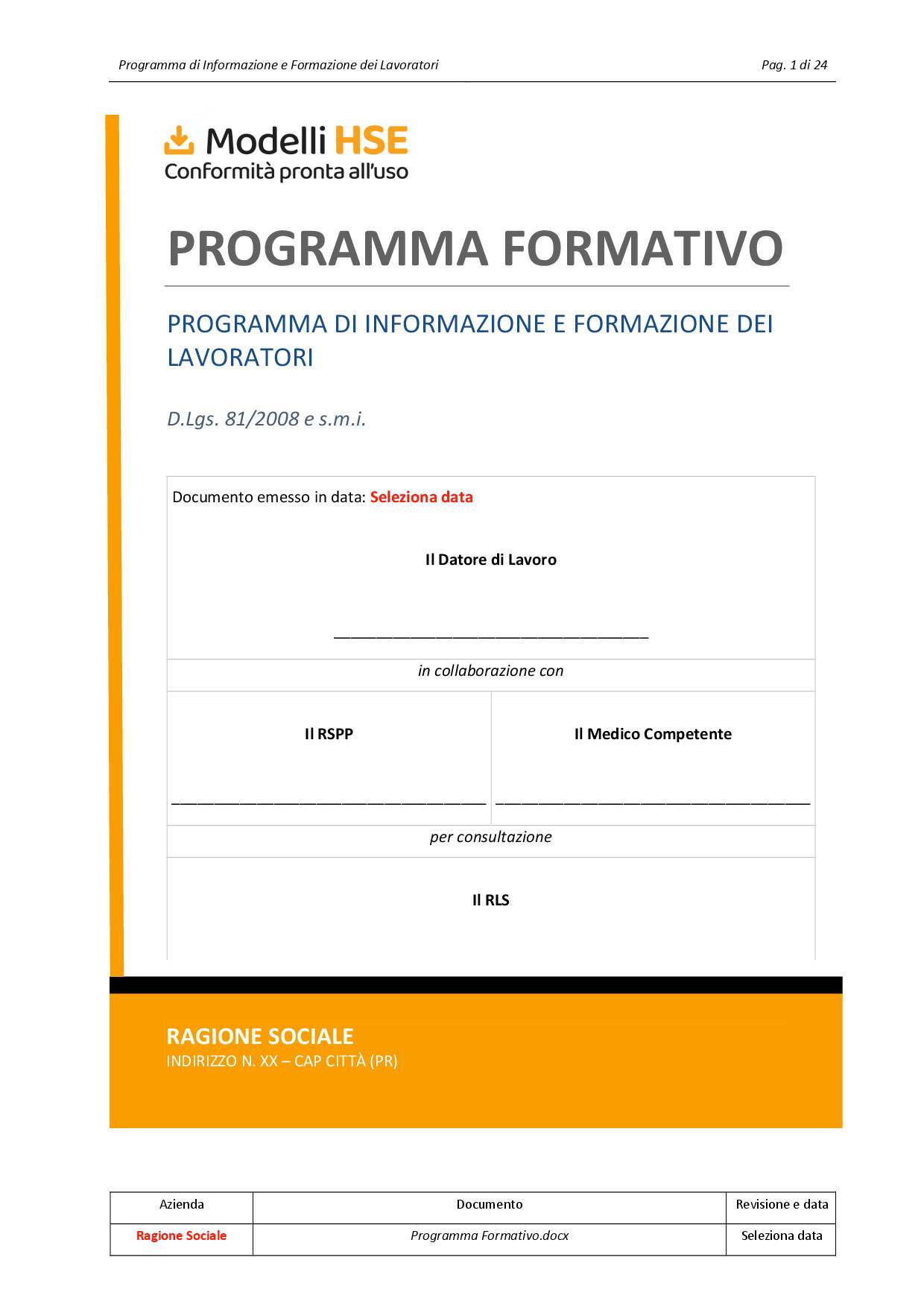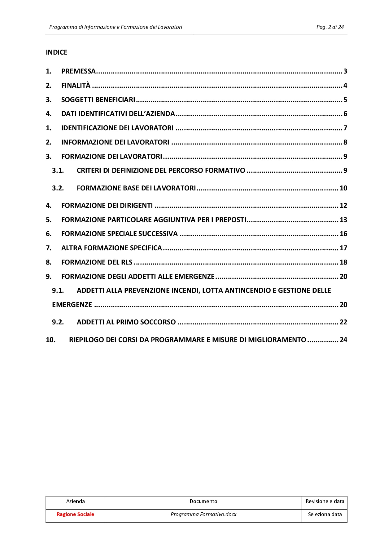 Modello personalizzabile in formato “Word” con cui è possibile formalizzare il “Programma di informazione e formazione” dei lavoratori comprendente ad esempio i seguenti contenuti: