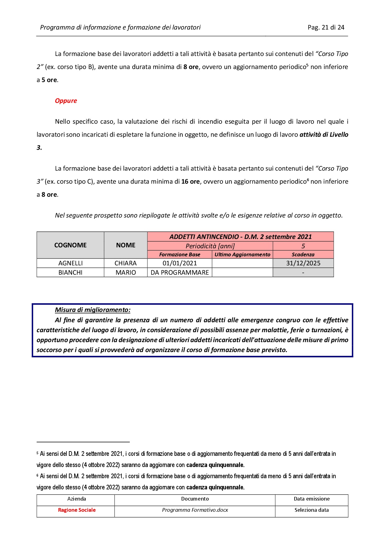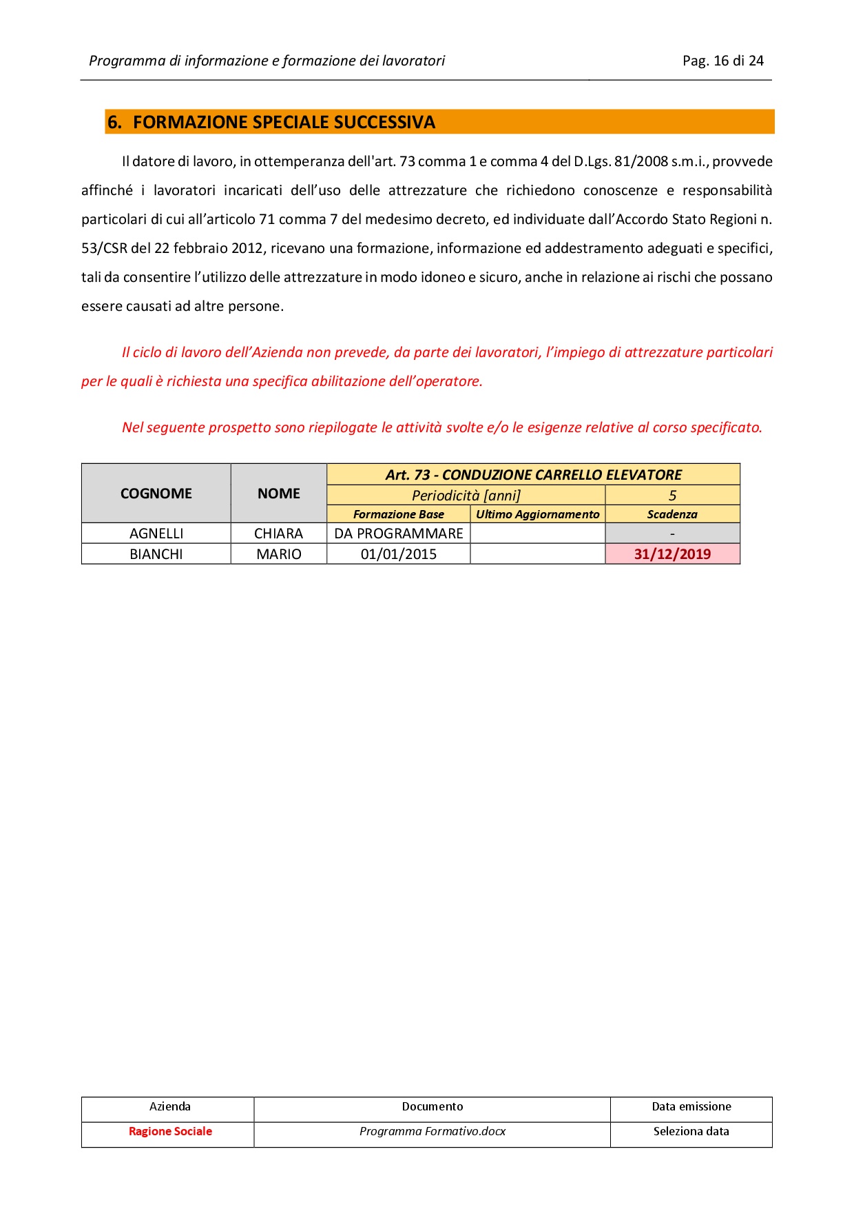 Programma di informazione e formazione dei lavoratori
