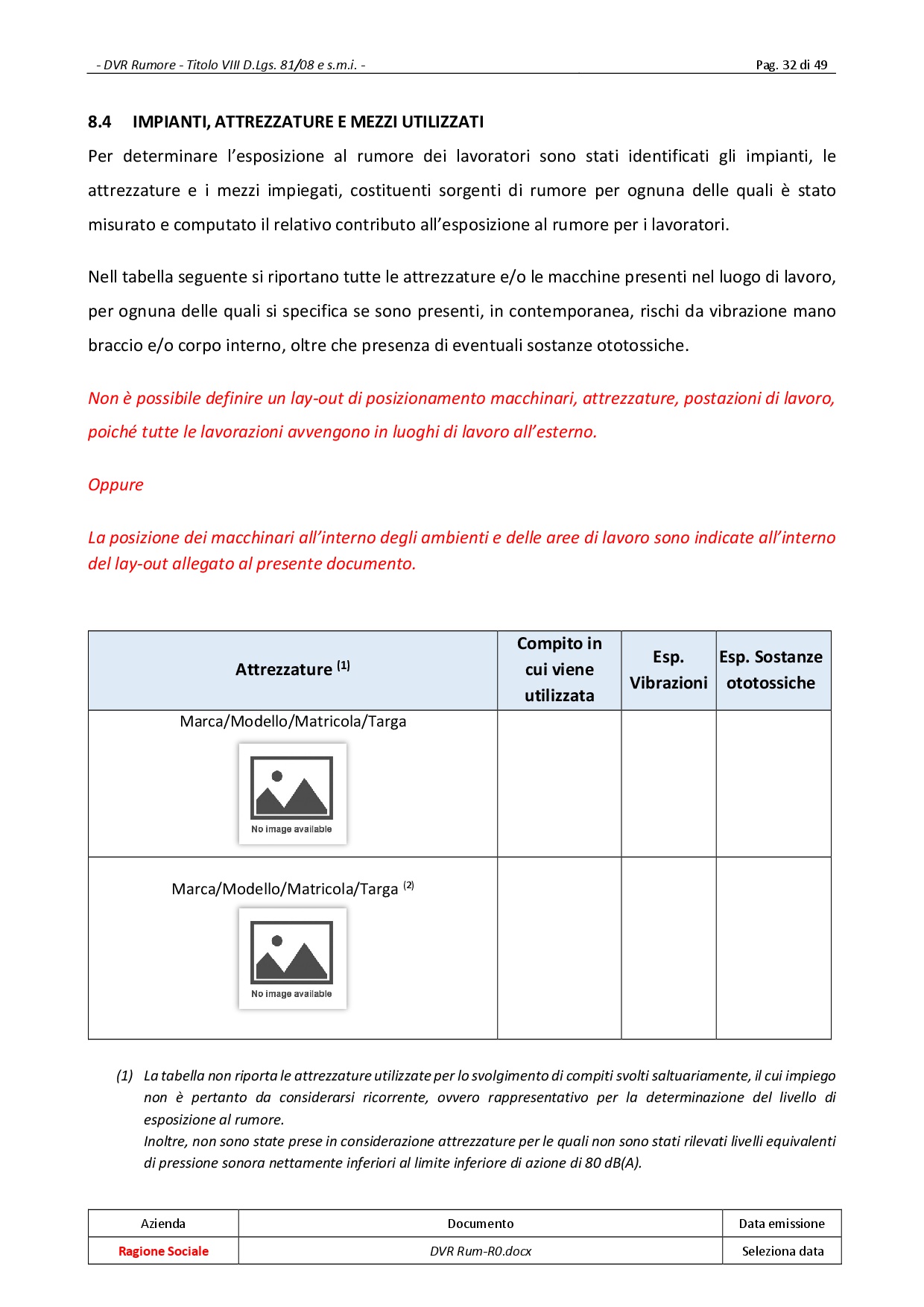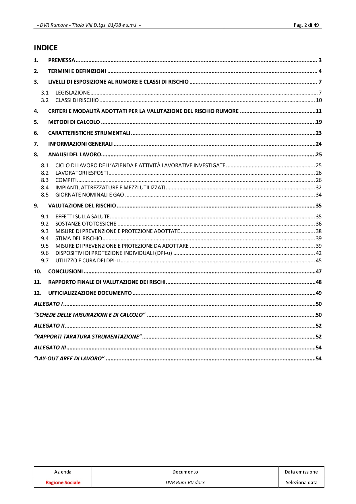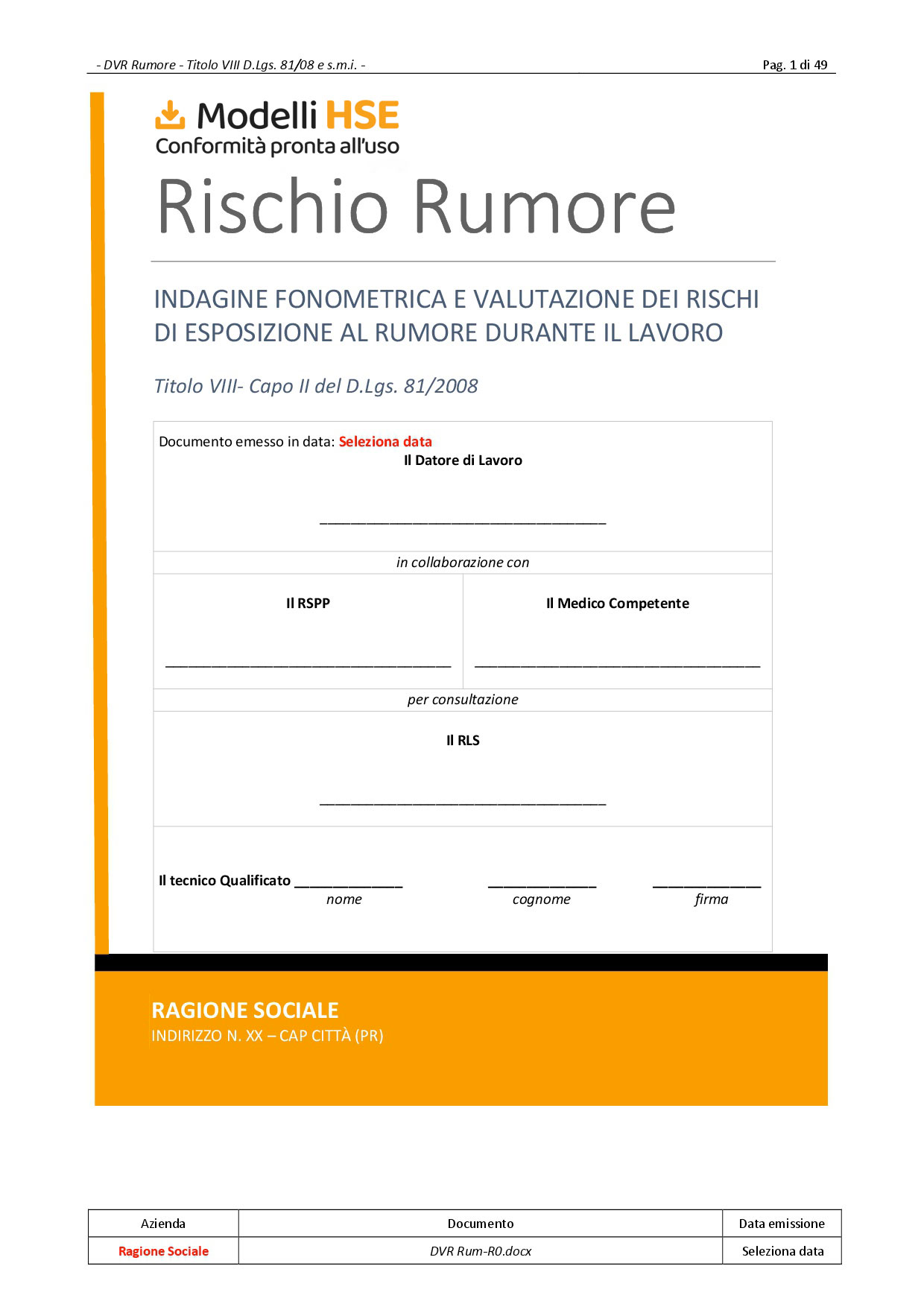 Modello esempio personalizzabile del Documento di Valutazione del Rischio Rumore in formato “Word” che include: